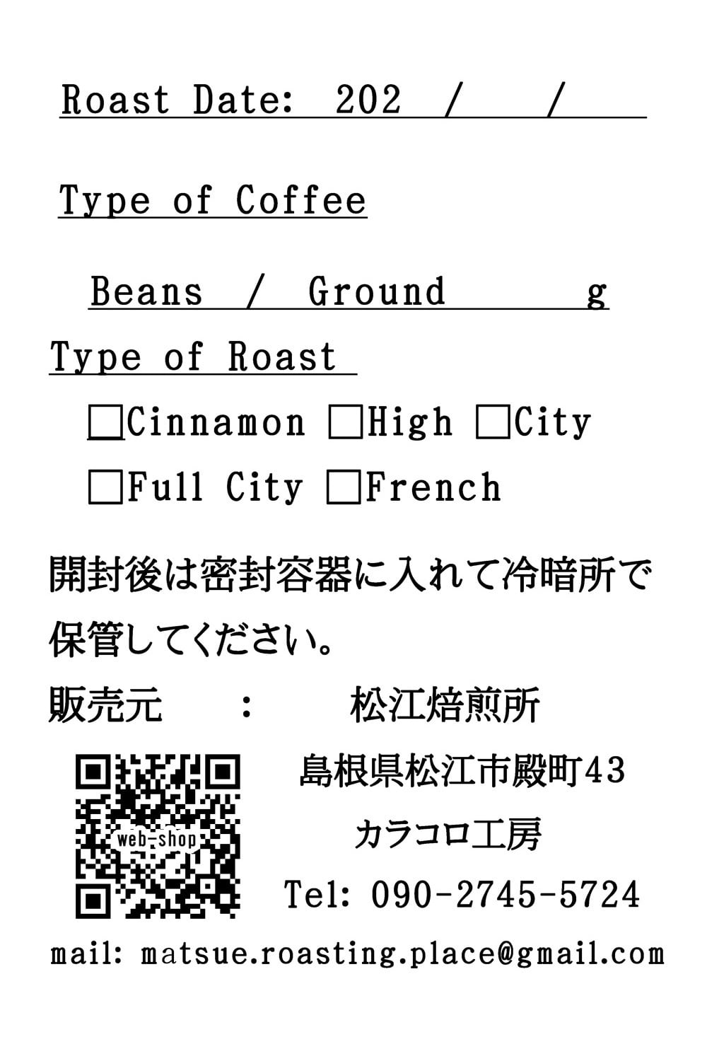焙煎日、焙煎タイプを記載致します。